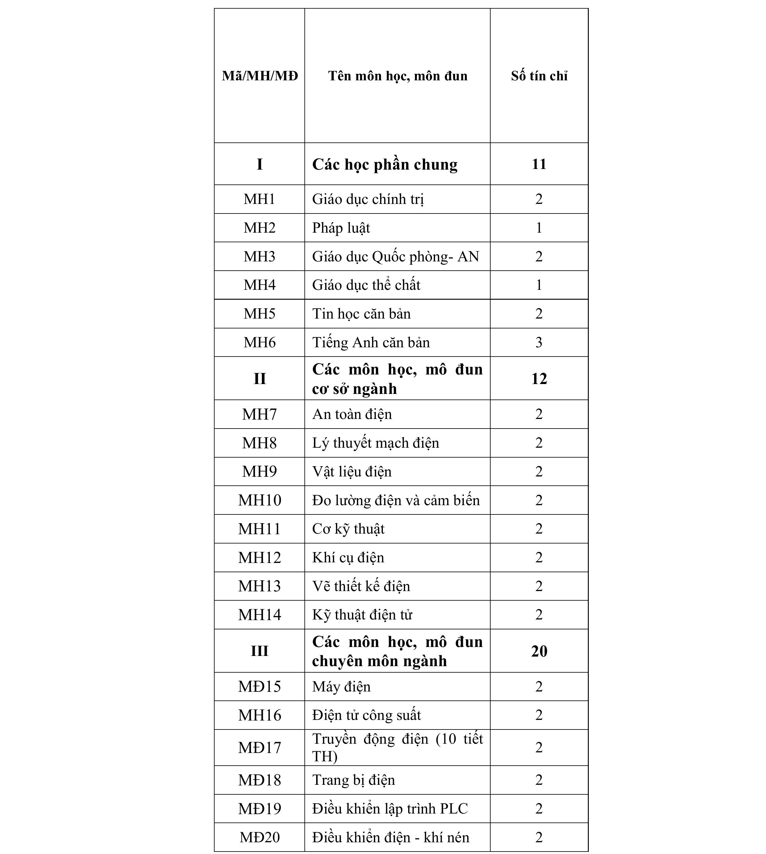 Chương trình đào tạo ngành Điện công nghiệp và dân dụng (26/09/2025)