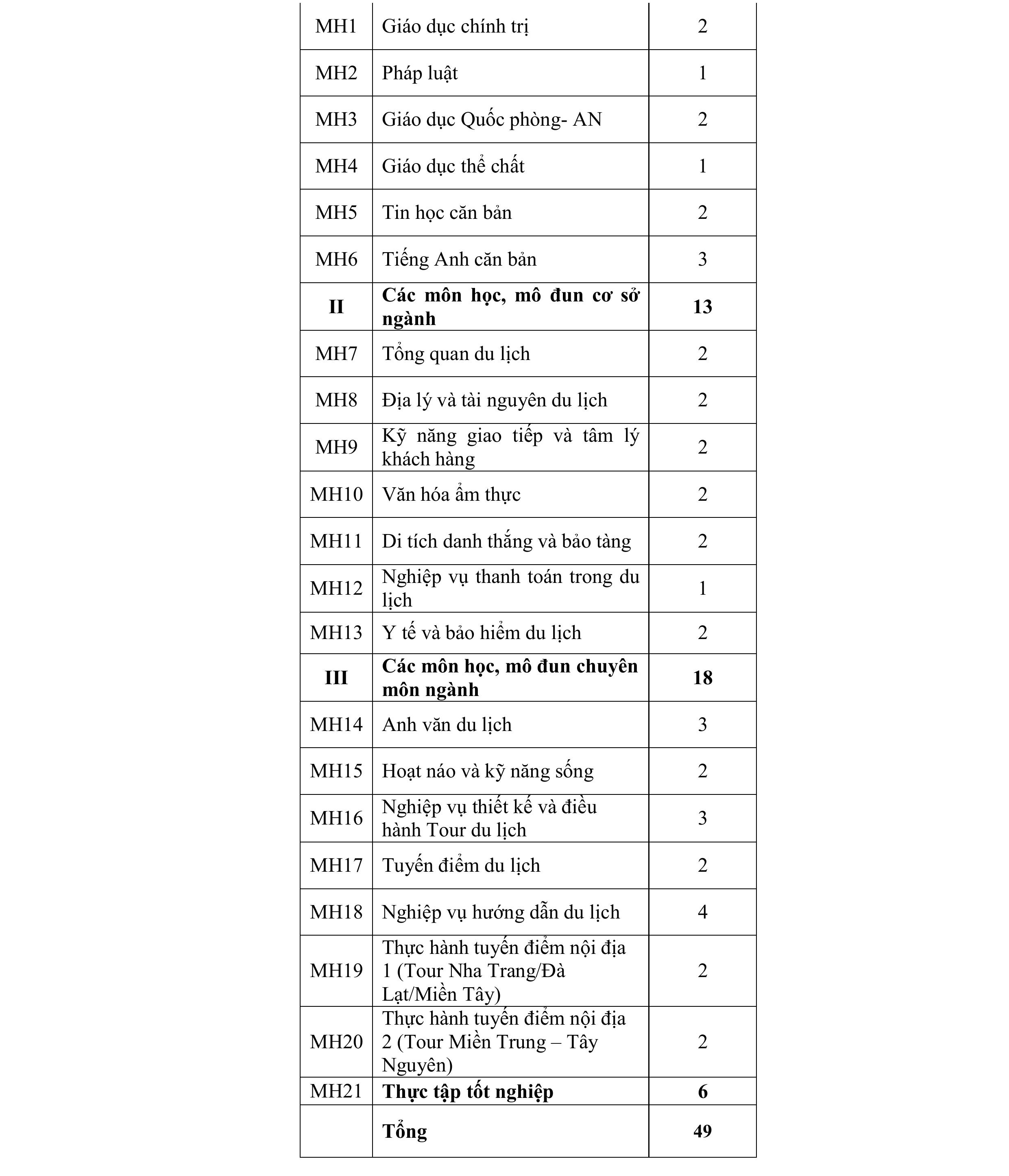 Chương trình đào tạo ngành Hướng dẫn du lịch (26/09/2025)
