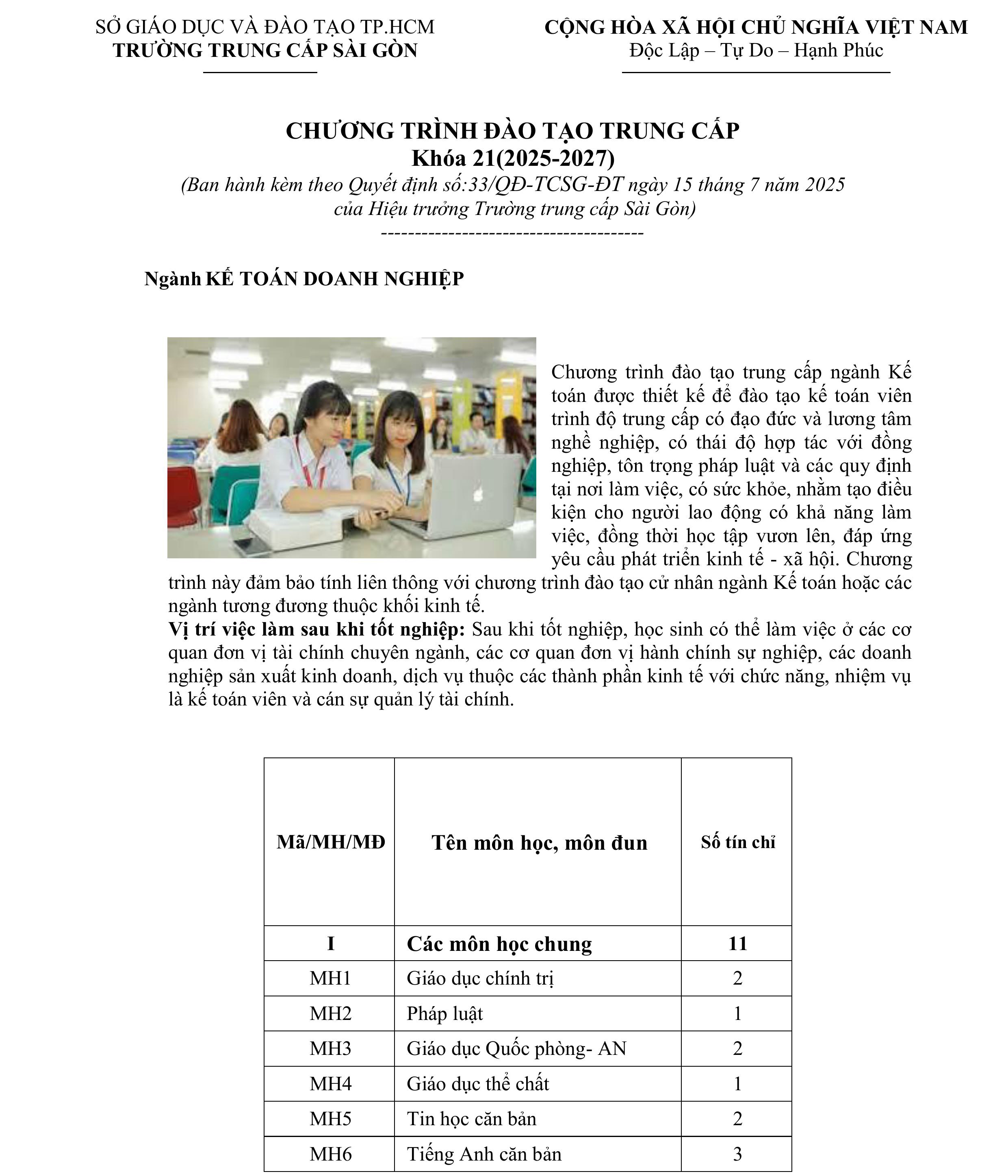 Chương trình đào tạo ngành Kế toán doanh nghiệp (26/09/2025)