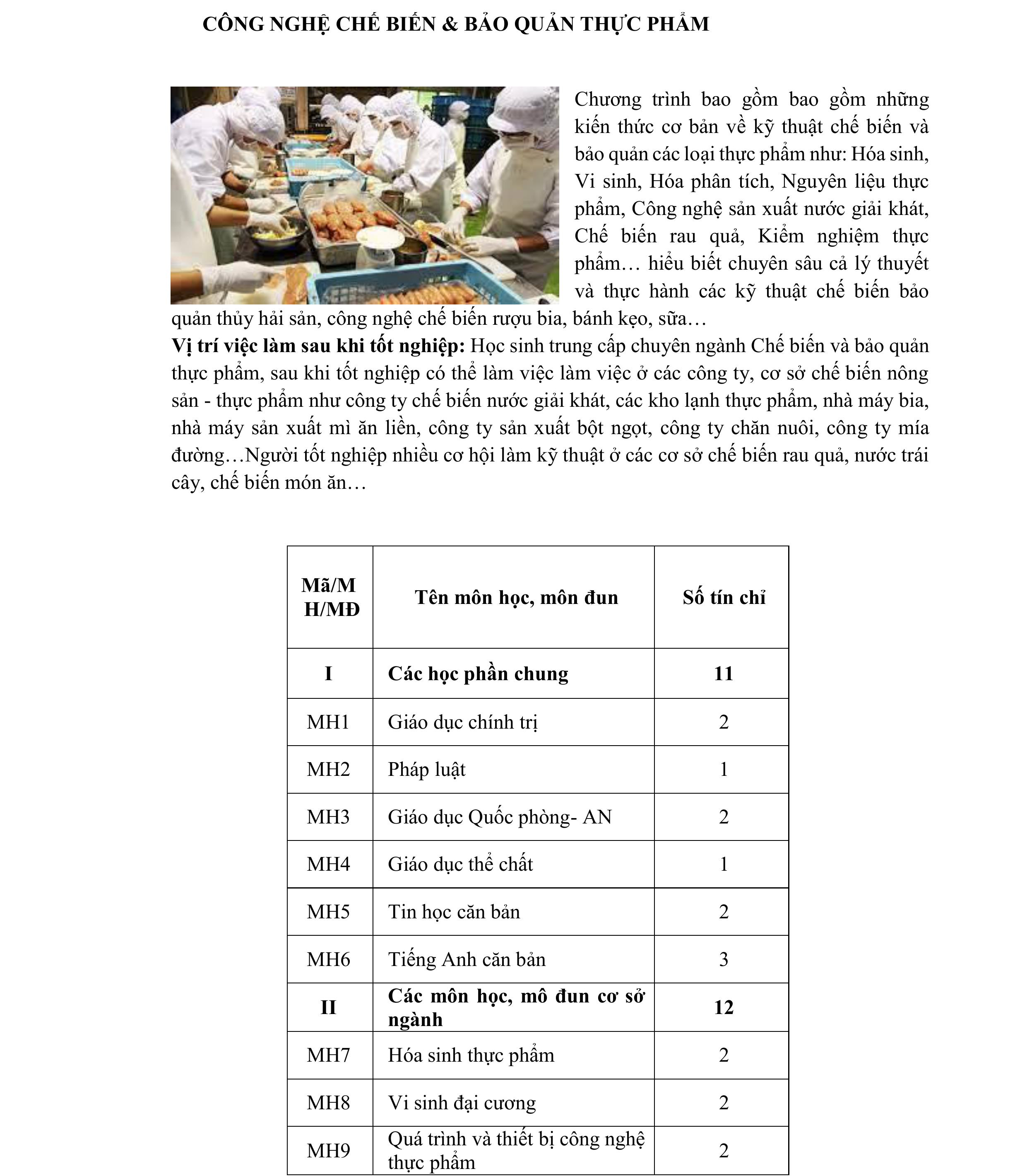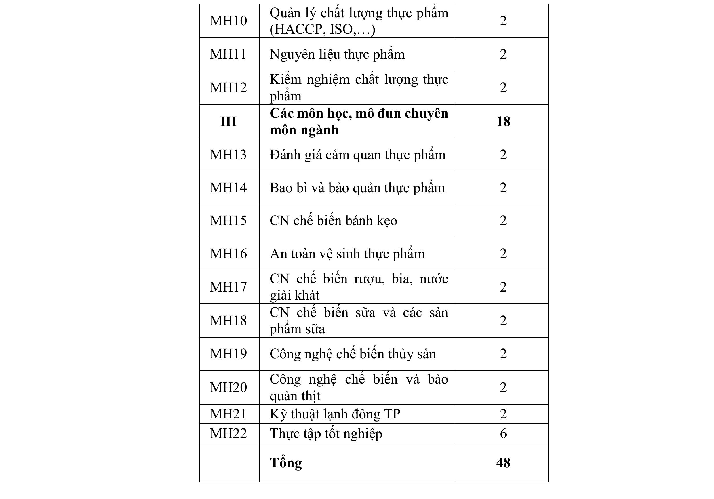 Chương trình đào tạo ngành Kỹ thuật công nghệ chế biến và bảo quản thực phẩm (26/09/2025)