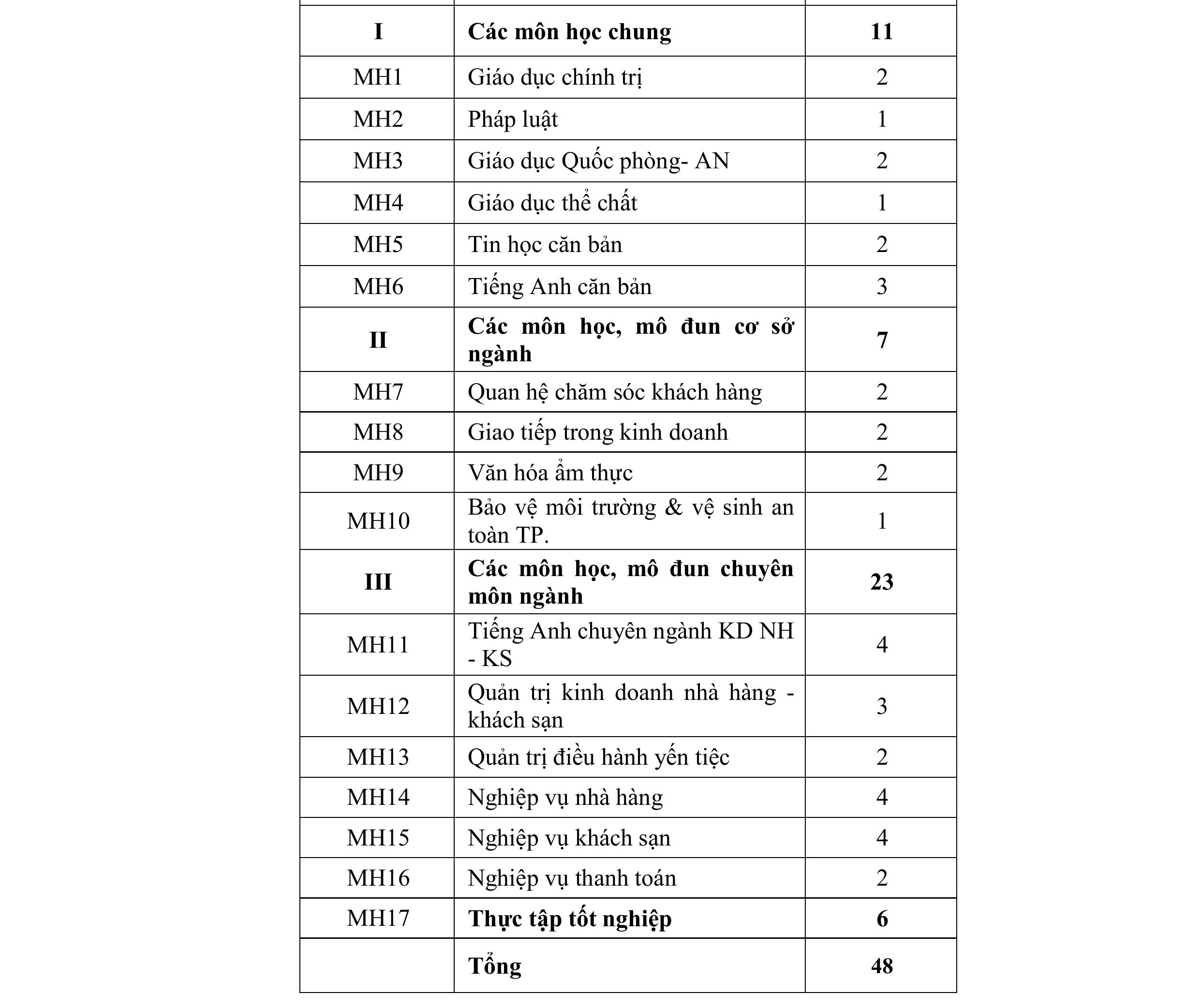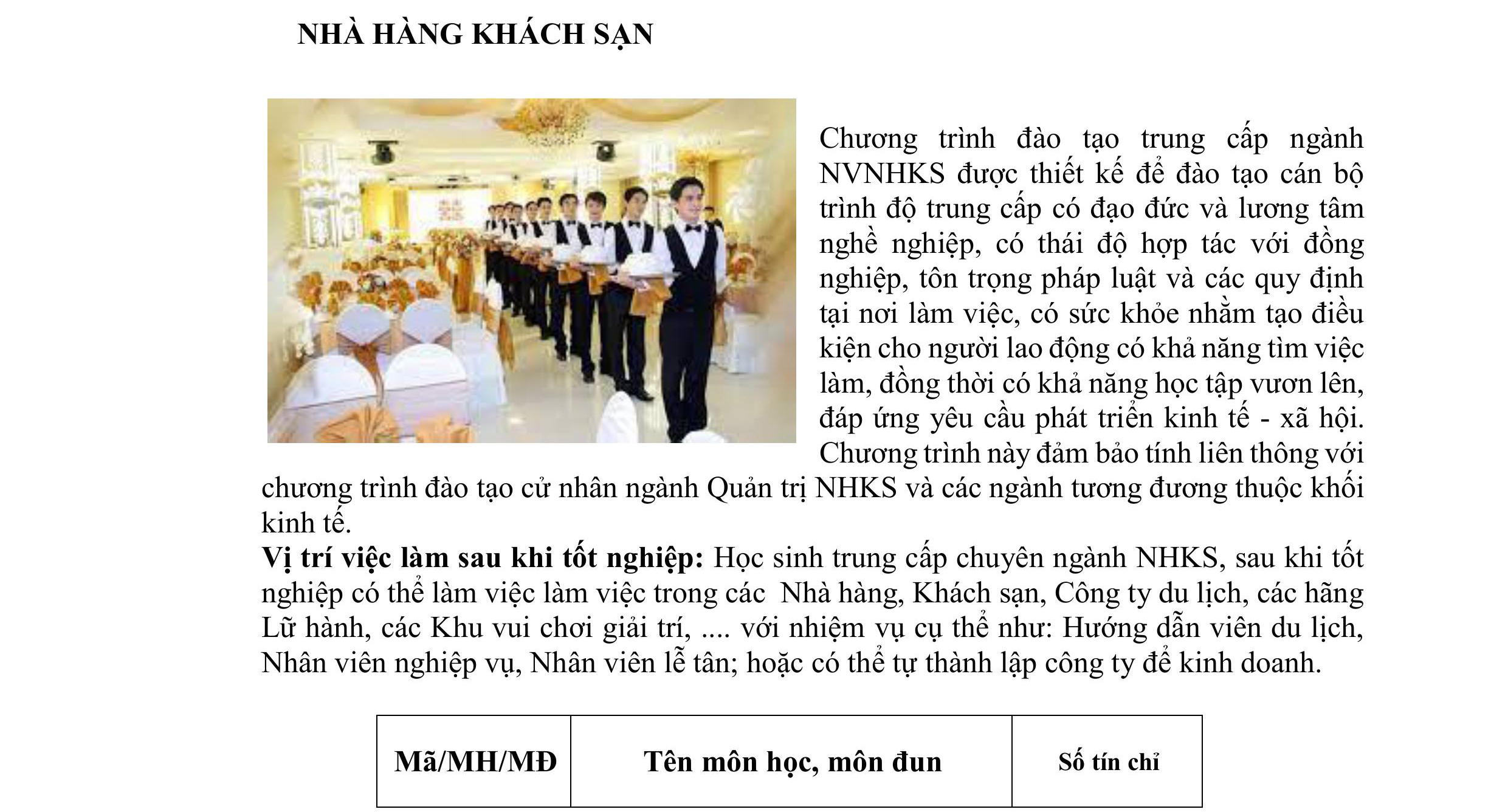 Chương trình đào tạo ngành Nghiệp vụ Nhà hàng khách sạn (26/09/2025)