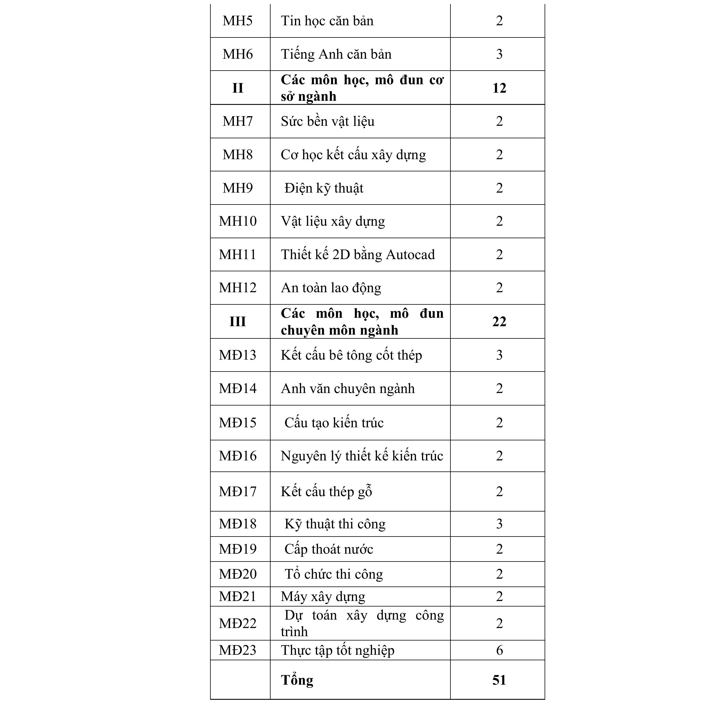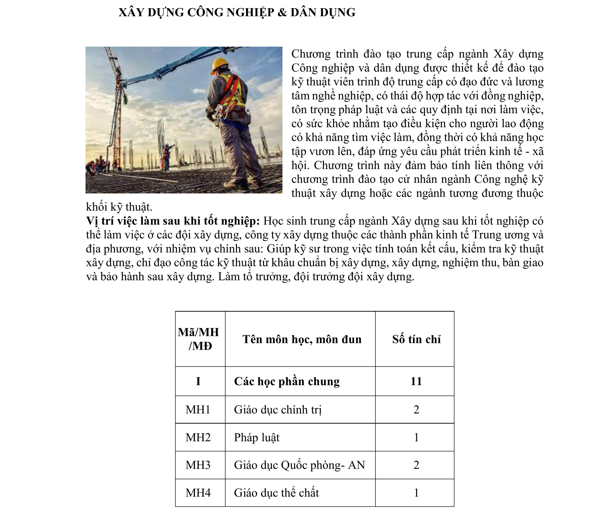 Chương trình đào tạo ngành Xây dựng công nghiệp và dân dụng (26/09/2025)