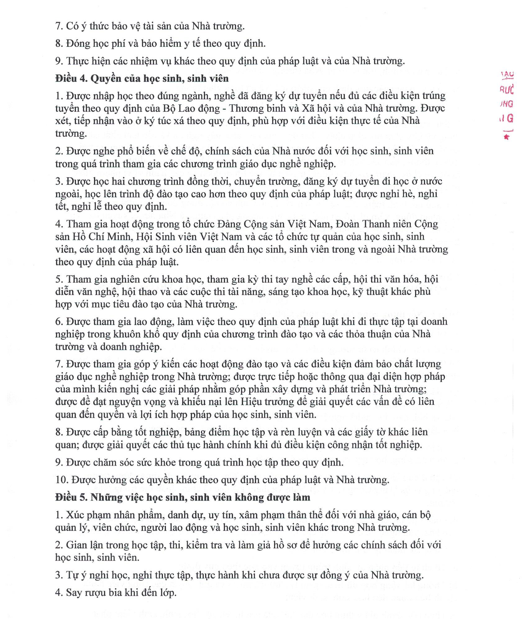 3. Trường sẽ cung cấp đầy đủ các thông tin cho người học về mục tiêu, nội dung và kế hoạch học tập của các chương trình, quy chế đào tạo, nghĩa vụ và quyền lợi của người học.